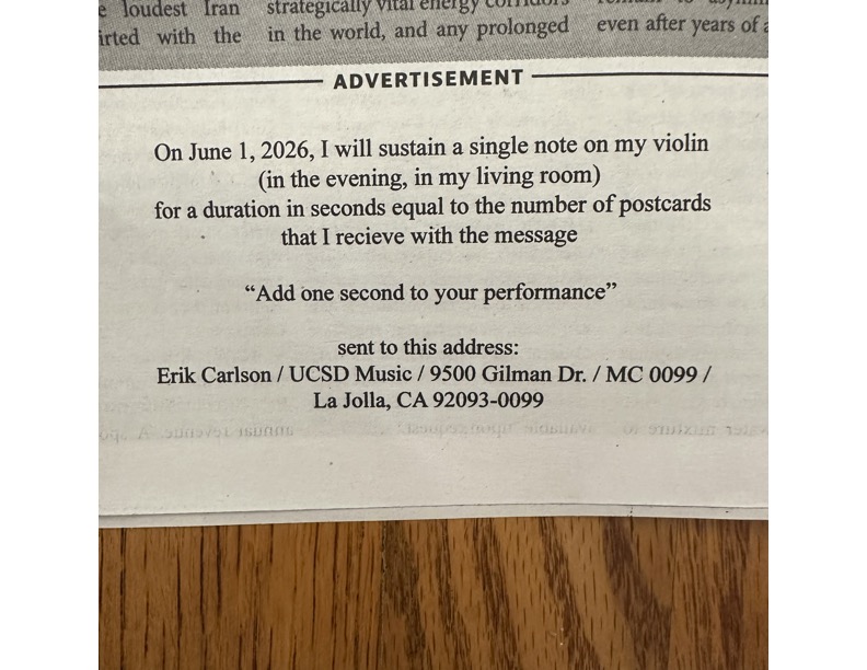 Here is a picture of an advertisement I placed in the UCSD Guardian newspaper.